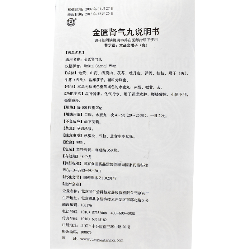 同仁堂 金匮肾气丸 360丸*1瓶/盒