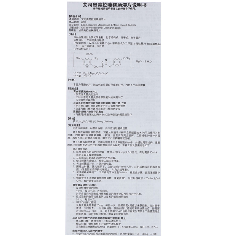 埃索美拉唑镁肠溶片