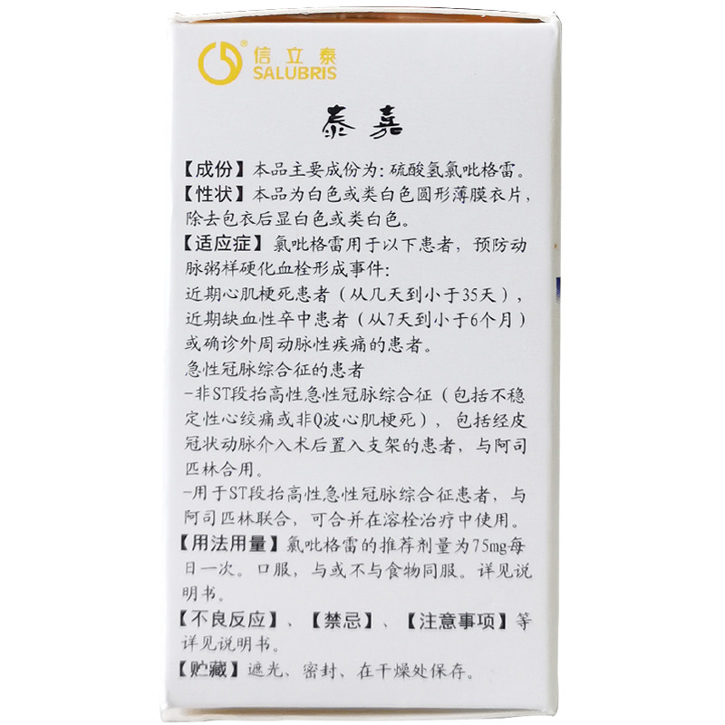首页>全部商品>专科用药>心脑血管>心脑血管综合用药>泰嘉硫酸氢氯吡格雷片20片